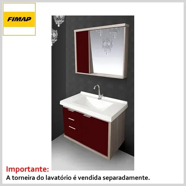 Cjto Toucador+Espelheira 080 c/Tampo Select Maple e Bordô - 815 x 595 x 455mm - Fimap