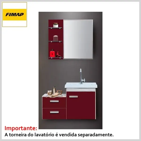Cjto Toucador+Espelheira 080 c/Tampo Supreme-City Maple e Bordô - 780 x 480 x 360mm - Fimap