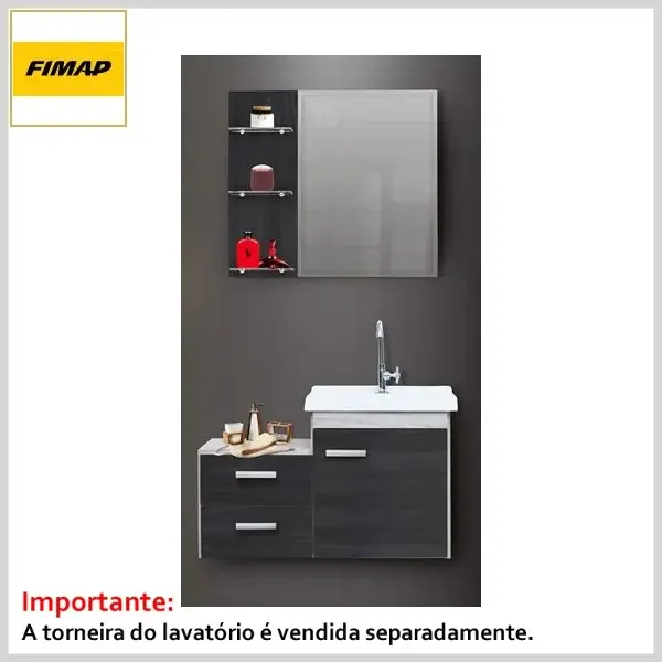 Cjto Toucador+Espelheira 080 c/Tampo Supreme-City Maple e Ébano - 780 x 480 x 360mm - Fimap