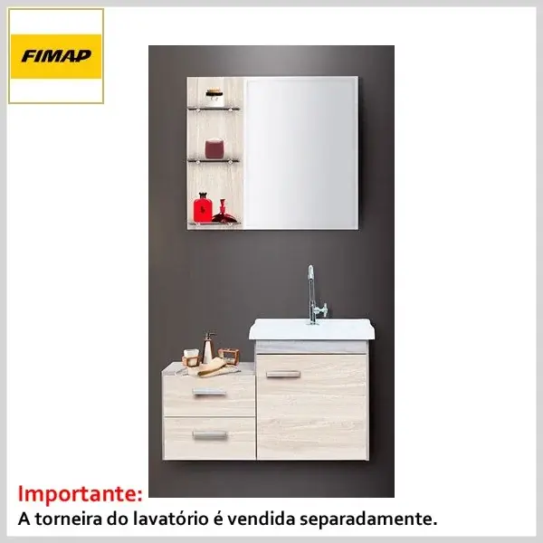 A torneira da pia não acompanha o conjunto (adquirir à parte).