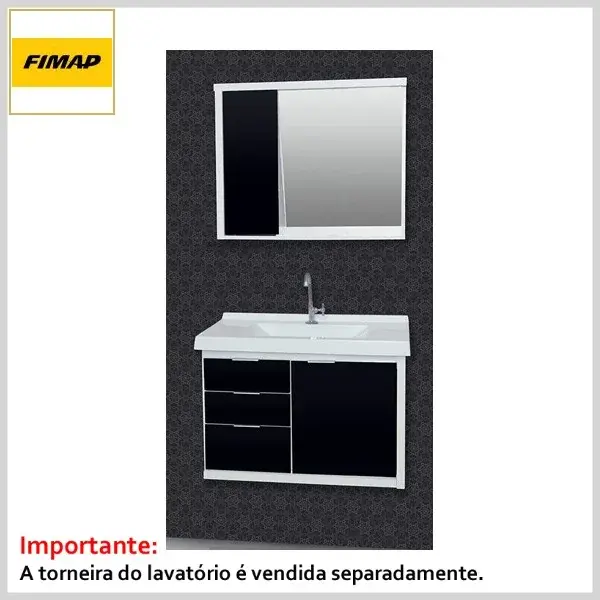 Cjto Toucador+Espelheira 080 c/Tampo Unik Branco e Preto - 815 x 595 x 455mm - Fimap