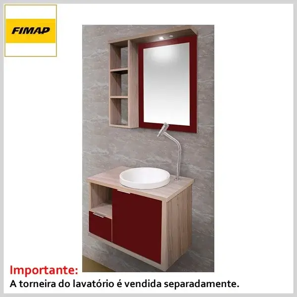 A torneira da pia não acompanha o conjunto (adquirir à parte).