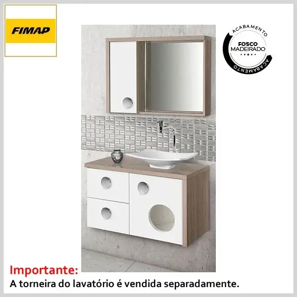 A torneira da pia não acompanha o conjunto (adquirir à parte).