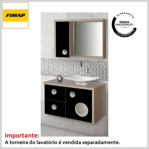 Cjto Toucador+Espelheira 080 c/Tampo+Cuba Opak Maple e Preto - 780 x 480 x 382mm - Fimap