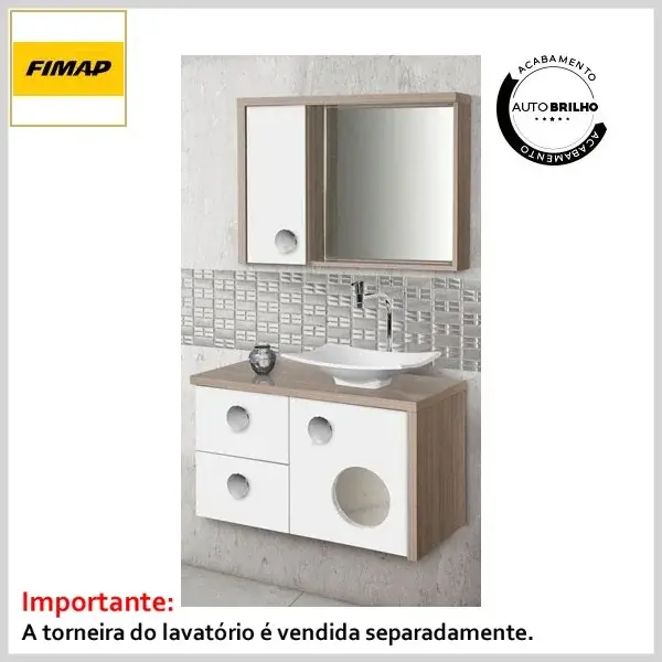A torneira da pia não acompanha o conjunto (adquirir à parte).