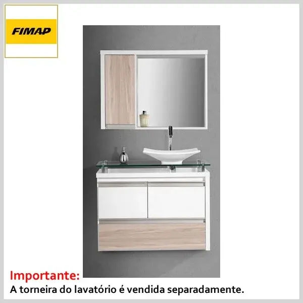 Cjto Toucador+Espelheira 080 c/Vidro+Cuba Arezzo-Thot Branco e Maple - 785 x 595 x 385mm - Fimap