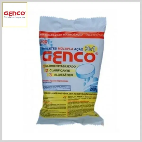 Cloro Estabilizado Tablete Múltipla Ação 3em1 (200 g) - Saco Plástico - Genco