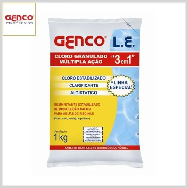 Cloro Granulado L.E. 3em1 Múltipla Ação (1,0 kg) - Saco Plástico - Genco
