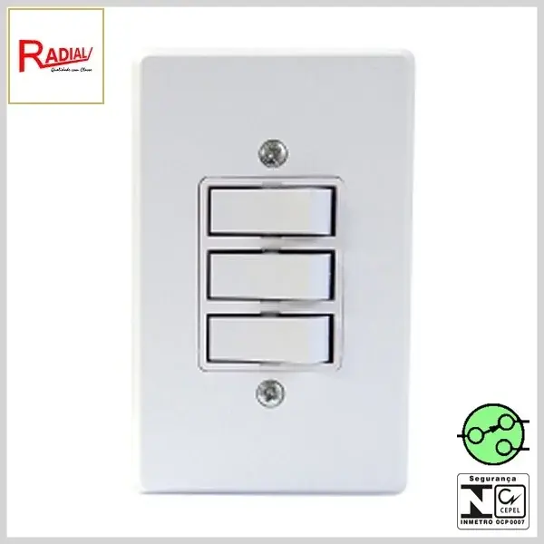 Produto confeccionado em plástico de engenharia, sendo indicado para comando de iluminação, embutido em caixas de luz. Permite operar em tensões de até 250Volts e com correntes máximas de até 10Amperes.