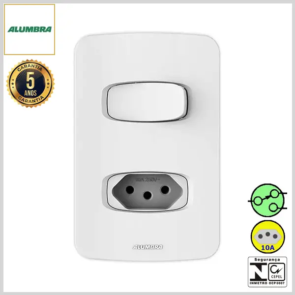 Conjunto de Embutir 4x2 Gracia 1 Interruptor Paralelo +1 Tom 2P+T Distanciados - 10 Amp x 250 Volts - Alumbra
