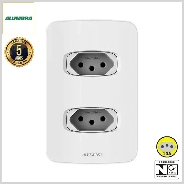 Conjunto de Embutir 4x2 Gracia 2 Tomadas 2P+T Distanciadas - 10 Amp x 250 Volts - Alumbra