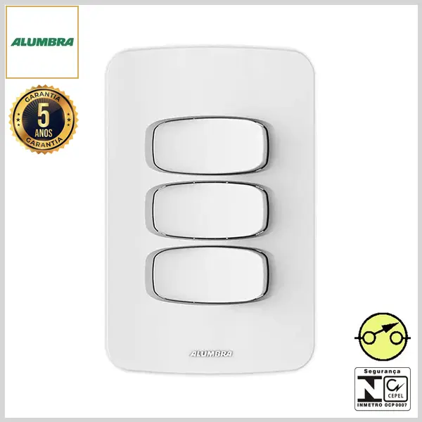 Conjunto de Embutir 4x2 Gracia 3 Interruptores Simples - 10 Amp x 250 Volts - Alumbra
