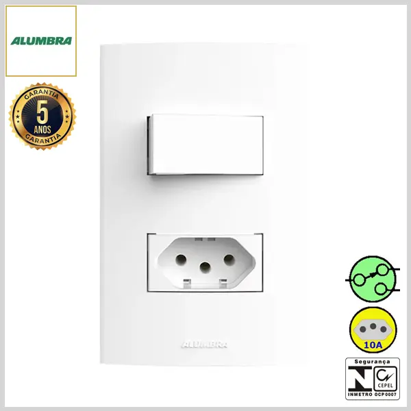 Conjunto de Embutir 4x2 InovaPro 1 Interruptor Paralelo +Tom 2P+T Distanciados - 10 Amp x 250 Volts - Alumbra