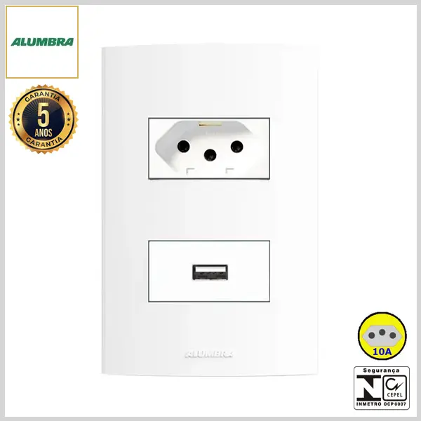 Conjunto de Embutir 4x2 InovaPro 1 Tomada 2P+T +1Tom USB Distanciadas - 10 Amp x 250 Volts - Alumbra