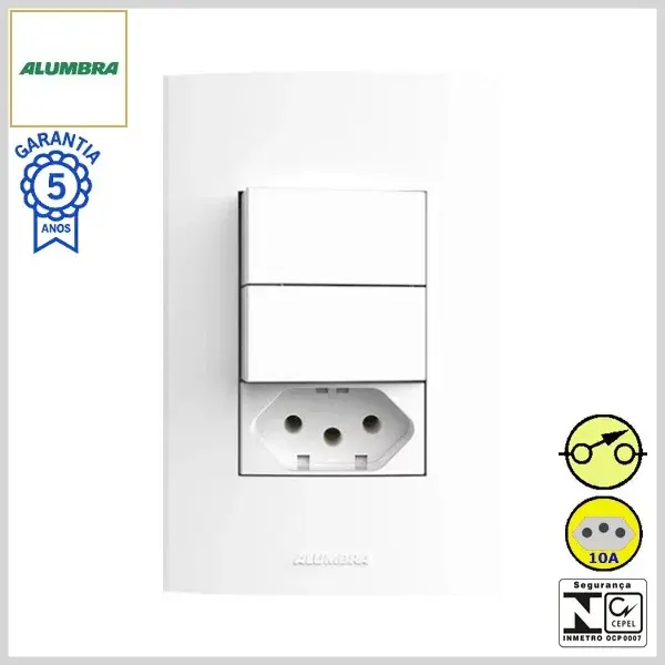 Conjunto de Embutir 4x2 InovaPro 2 Interruptores Simples +1Tom 2P+Terrra - 10 Amp x 250 Volts - Alumbra