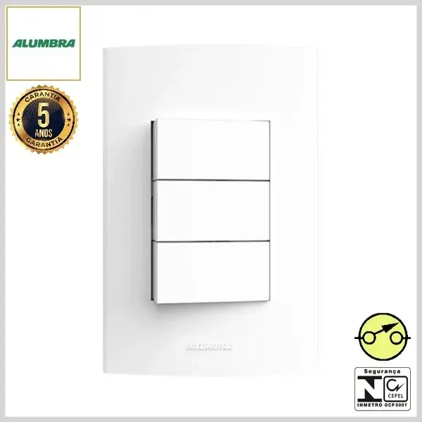 Conjunto de Embutir 4x2 InovaPro 3 Interruptores Simples - 10 Amp x 250 Volts - Alumbra