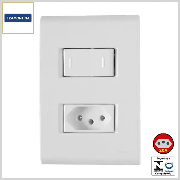 Conjunto de Embutir 4x2 Liz Brilhante 1 Interruptor Paralelo +1 Tomada 2P+T 20Ax250V - Branco - Tramontina