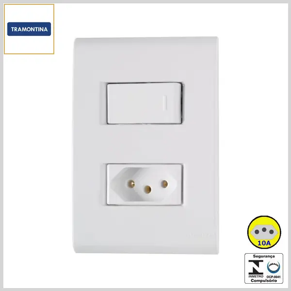 Conjunto de Embutir 4x2 Liz Brilhante 1 Interruptor Simples +1 Tomada 2P+T 10Ax250V - Branco - Tramontina