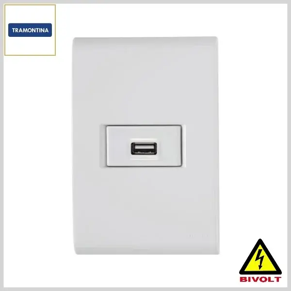 Conjunto de Embutir 4x2 Liz Brilhante 1 Tomada Usb 1.5A Bivolt - Branco - Tramontina