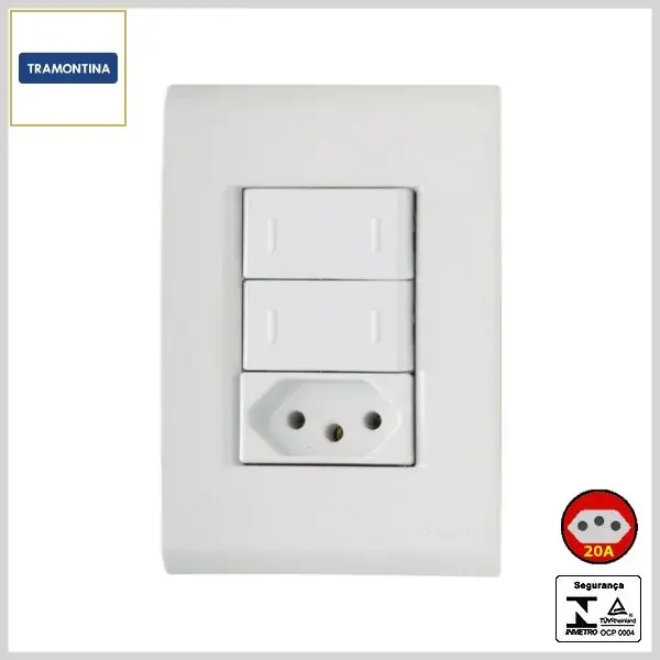 Conjunto de Embutir 4x2 Liz Brilhante 2 Interruptores Paralelos +1 Tomada 2P+T 20Ax250V - Branco - Tramontina