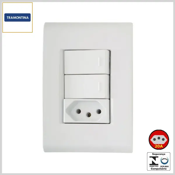 Conjunto de Embutir 4x2 Liz Brilhante 2 Interruptores Simples +1 Tomada 2P+T 20Ax250V - Branco - Tramontina