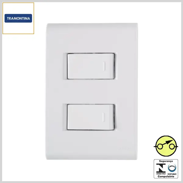 Conjunto de Embutir 4x2 Liz Brilhante 2 Interruptores Simples 10Ax250V - Branco - Tramontina