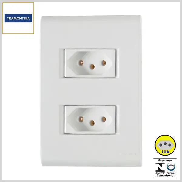 Conjunto de Embutir 4x2 Liz Brilhante 2 Tomadas 2P+T 10Ax250V - Branco - Tramontina