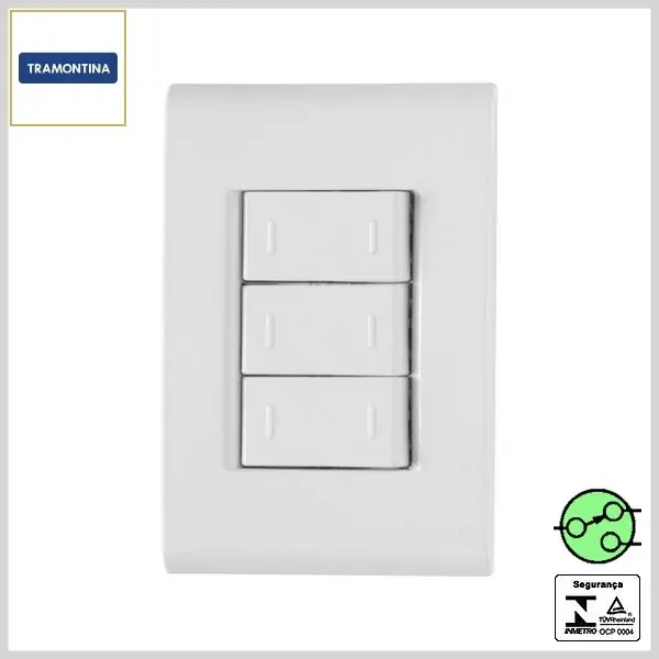 Conjunto de Embutir 4x2 Liz Brilhante 3 Interruptores Paralelos 10Ax250V - Branco - Tramontina