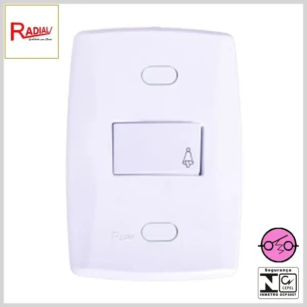 Produto confeccionado em plástico de engenharia, sendo indicado para comando de acionamento de campainhas e cigarras elétricas, embutido em caixas de luz. Permite operar em tensões de até 250Volts e com correntes máximas de até 10Amperes.