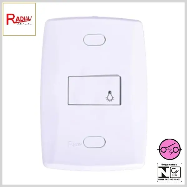 Produto confeccionado em plástico de engenharia, sendo indicado para comando de acionamento de minuterias elétricas ou eletrônicas, embutido em caixas de luz. Permite operar em tensões de até 250Volts e com correntes máximas de até 10Amperes.