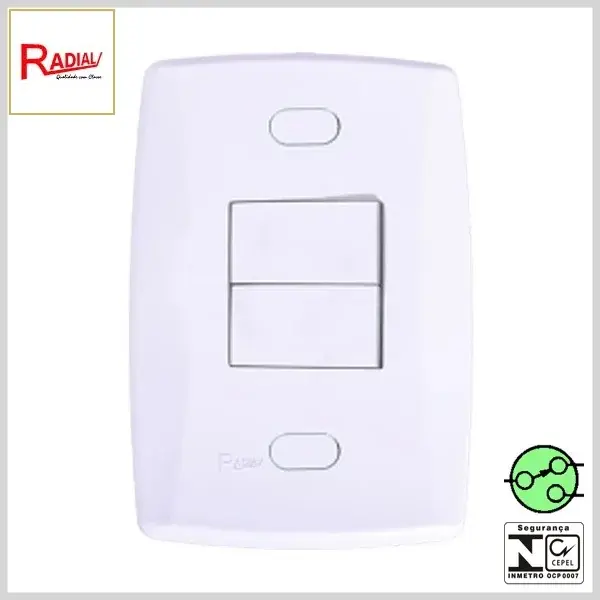 Produto confeccionado em plástico de engenharia, sendo indicado para comando de iluminação, embutido em caixas de luz. Permite operar em tensões de até 250Volts e com correntes máximas de até 10Amperes.