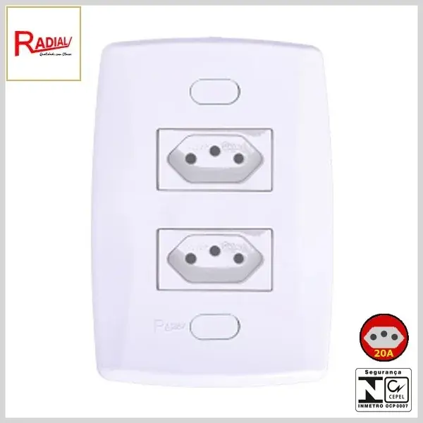 Produto confeccionado em plástico de engenharia, para operação embutida em caixas de luz, sendo indicado para alimentação de equipamentos elétricos de baixa potência. Permite operar em tensões de até 250Volts e com correntes máximas de 10Amperes (disponível também para correntes de até 20A).