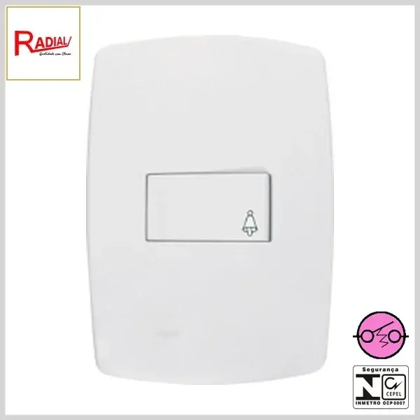 Produto confeccionado em plástico de engenharia, sendo indicado para comando de acionamento de campainhas e cigarras elétricas, embutido em caixas de luz. Permite operar em tensões de até 250Volts e com correntes máximas de até 10Amperes.
