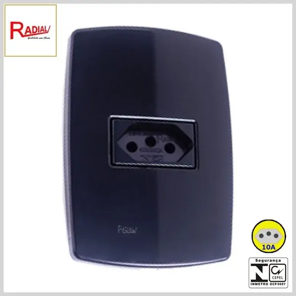 Conjunto de Embutir 4x2 Pérola Negra 1 Tomada 2Polos+Terra - 10 Amp x 250 Volts - Radial