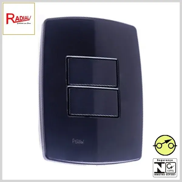 Conjunto de Embutir 4x2 Pérola Negra 2 Interruptores Simples - 10 Amp x 250 Volts - Radial