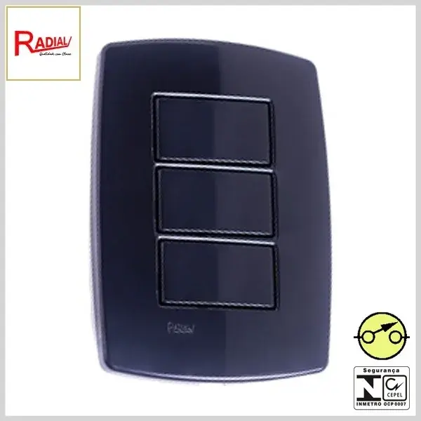 Conjunto de Embutir 4x2 Pérola Negra 3 Interruptores Simples - 10 Amp x 250 Volts - Radial