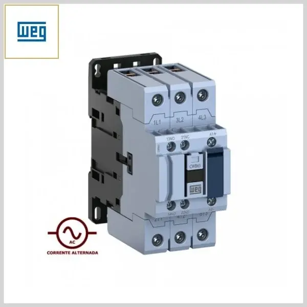 Os CONTATORES WEG linha CWB são fabricados com materiais de baixo impacto ao meio ambiente e de acordo com os requisitos internacionais RoHs. Possuem 2 contatos auxiliares (1NA+1NF) incorporados, o que torna sua aplicação mais flexível na maioria dos sistemas de automação, com versões para correntes alternada (CA) ou contínua (CC). Como são compactos, com 45mm de largura (9 a 38A) e 54mm de largura (40 a 80A), contribuem para a otimização do espaço interno dos painéis elétricos, em comparação com soluções tradicionais de contatores com a mesma especificação.