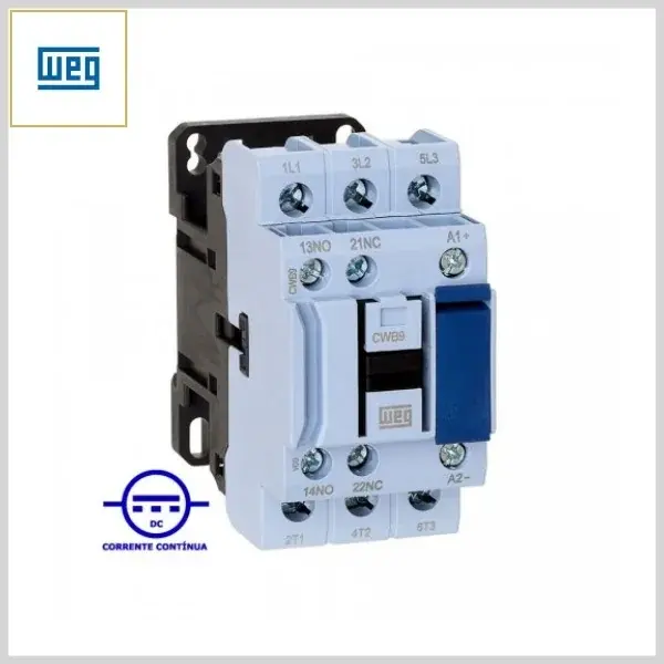 Os CONTATORES WEG linha CWB são fabricados com materiais de baixo impacto ao meio ambiente e de acordo com os requisitos internacionais RoHs. Possuem 2 contatos auxiliares (1NA+1NF) incorporados, o que torna sua aplicação mais flexível na maioria dos sistemas de automação, com versões para correntes alternada (CA) ou contínua (CC). Como são compactos, com 45mm de largura (9 a 38A) e 54mm de largura (40 a 80A), contribuem para a otimização do espaço interno dos painéis elétricos, em comparação com soluções tradicionais de contatores com a mesma especificação.