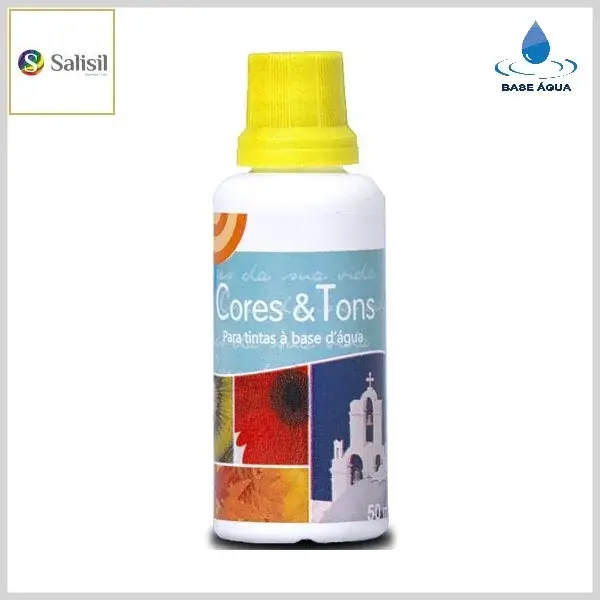Corante Líquido Cores-e-Tons da Salisil é um produto concentrado com alto poder de tingimento, sendo indicado para o tingimento de tintas látex, acrílicas e esmaltes a base de água. Disponibilizado em frascos plásticos de 50ml, é produzido em 15 cores diferentes, permitindo a obtenção de várias tonalidades para cada cor escolhida. Para cada galão de tinta (3.6L) poderá ser adicionado no máximo 1 frasco do corante (50ml), até que se atinja a tonalidade desejada, mantendo-se a proporção para as demais embalagens.