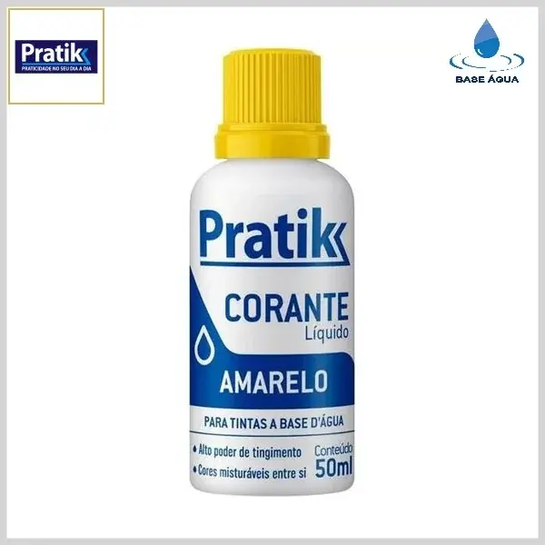 Corante Líquido Pratik é um produto que apresenta excelente poder de tingimento para tintas à base de água (acrílicas, látex e esmaltes), além de fácil homogeneização após a mistura. Embalado em frascos plásticos de 50ml, está disponível em 9 cores, permitindo a obtenção de infinitas outras combinações de cores, misturadas entre si. Recomenda-se utilizar no máximo uma bisnaga (50ml) para cada galão de tinta (3.6L), mantendo-se essa proporção para as demais embalagens.