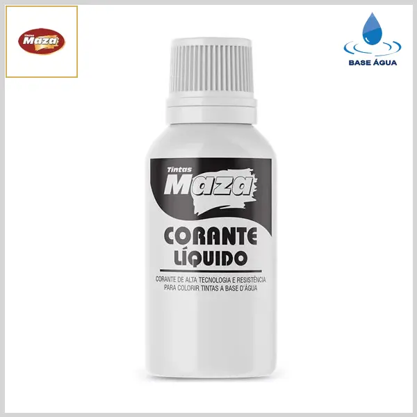 Corante Líquido Maza é especialmente formulado para o tingimento de tintas látex, acrílicas ou esmaltes a base de água. É um produto de fácil homogeneização e com alto poder de tingimento. Disponibilizado em frascos plásticos de 50ml, é produzido em 10 cores diferentes, possibilitando a obtenção de diversas tonalidades para cada padrão de cor escolhido. Para cada galão de tinta (3.6L) poderá ser adicionado no máximo 1 frasco do corante (50ml) até atingir a cor desejada, mantendo-se a proporção para as demais embalagens.