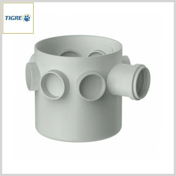 Corpo de Caixa Sifonada s/Grelha e Porta-Grelha (7 Entradas - Série R) - Diâmetro: 150 x 150(Altura) x 50 mm - Tigre