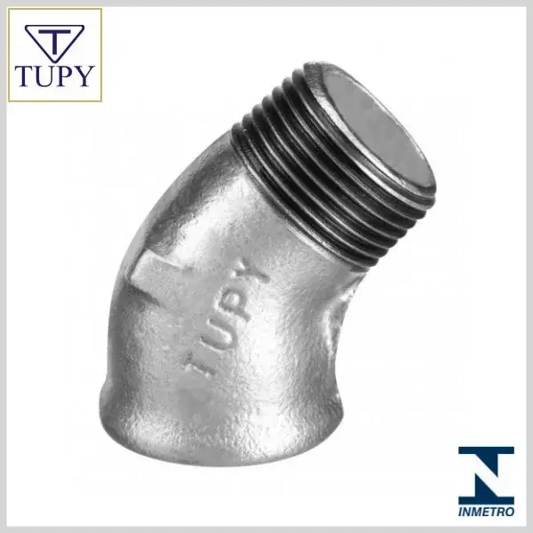 Cotovelo Macho e Fêmea 45º FºGº Maleável BSP - Diâmetro: 3/8pol(10mm) - Tupy