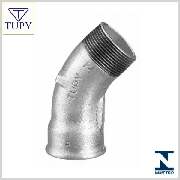 Curva Macho e Fêmea 45º FºGº Maleável BSP - Diâmetro: 3/8pol(10mm) - Tupy