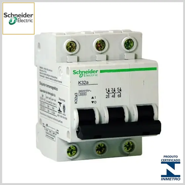 Disjuntor Modular K32A DIN 3 Polos 3,0kA 240/415V - Curva B - Corrente: 6 A - Schneider