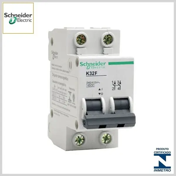 Disjuntor Modular K32F DIN 2 Polos 4,5kA 240/415V - Curva B - Corrente: 6 A - Schneider