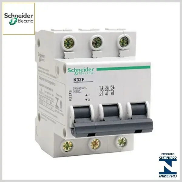 Disjuntor Modular K32F DIN 3 Polos 4,5kA 240/415V - Curva B - Corrente: 6 A - Schneider