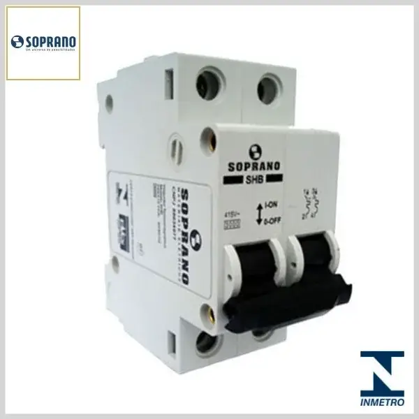 Disjuntor SHB2-GII DIN 2 Polos 3,0kA 240/425V - Curva C - Corrente: 6 A - Soprano