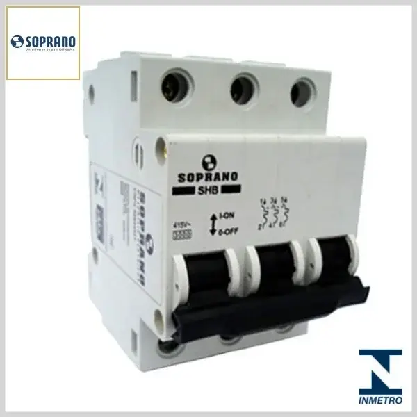 Disjuntor SHB3-GII DIN 3 Polos 3,0kA 240/425V - Curva C - Corrente: 6 A - Soprano