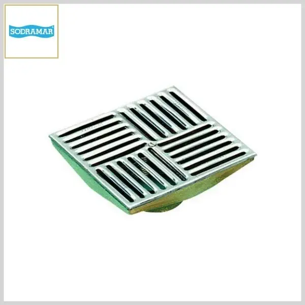Dreno de Fundo Piscina c/Grelha Inox (15 x 15cm) - Base: Latão / Saída: 2.0" - Sodramar